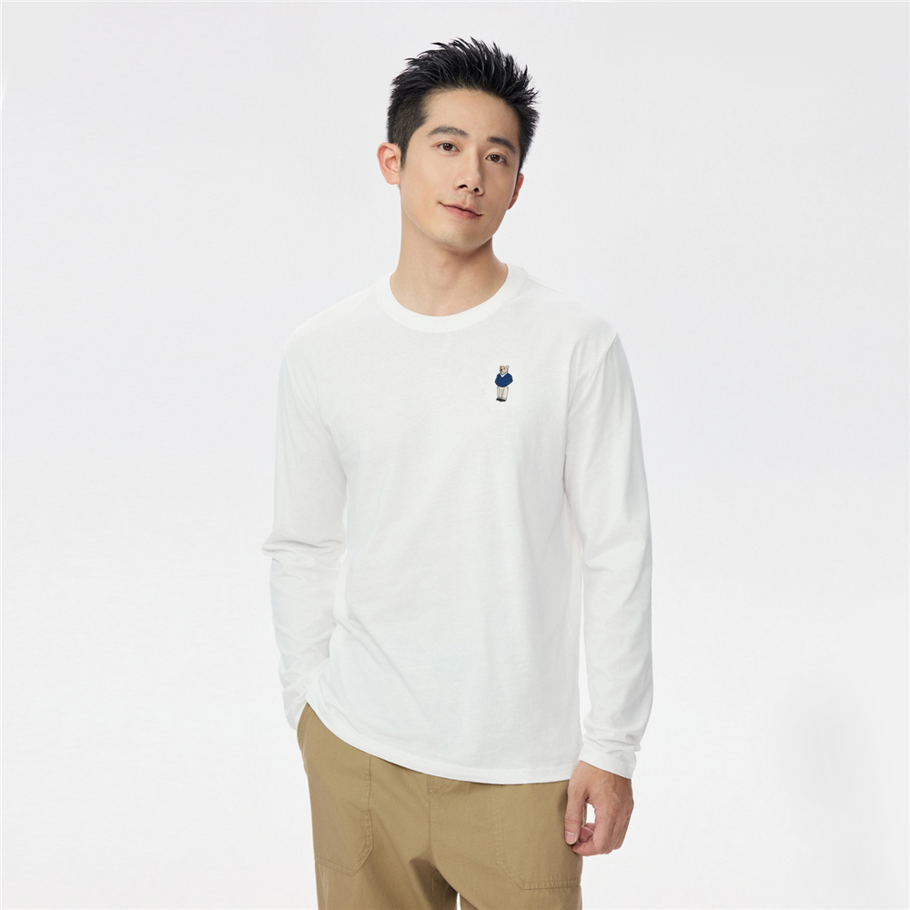 小动物刺绣圆领上衣13025790 纯棉打底衫 佐丹奴长袖 T恤男秋冬新款