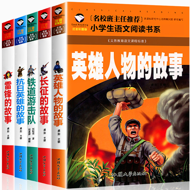 故事书籍全5册儿童读物雷锋 抗日英雄人物 故事彩图注音版 故事铁道游击队正版 故事书小学生一二三年级课外阅读书 长征 红色经典