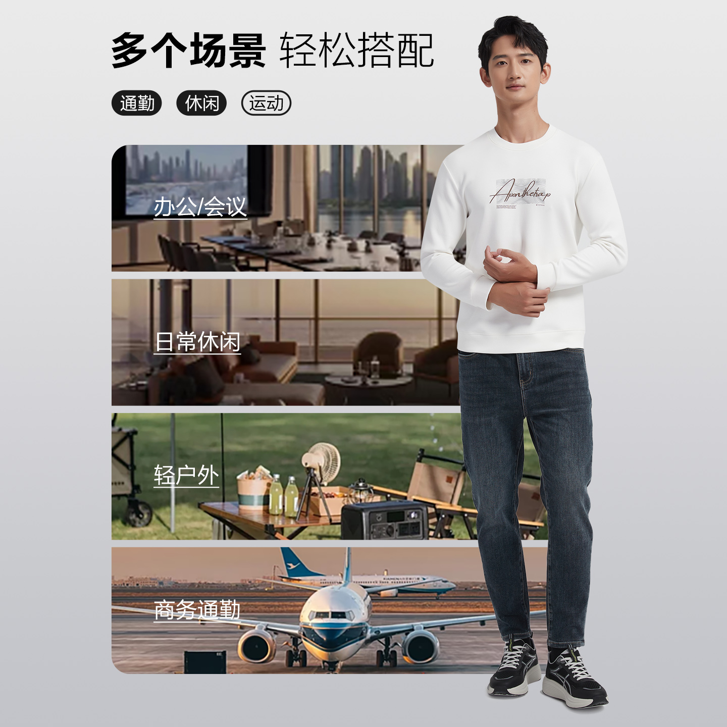 圆领直筒休闲长袖 古鲨白色图案印花卫衣男 T恤2025秋装 莫代尔