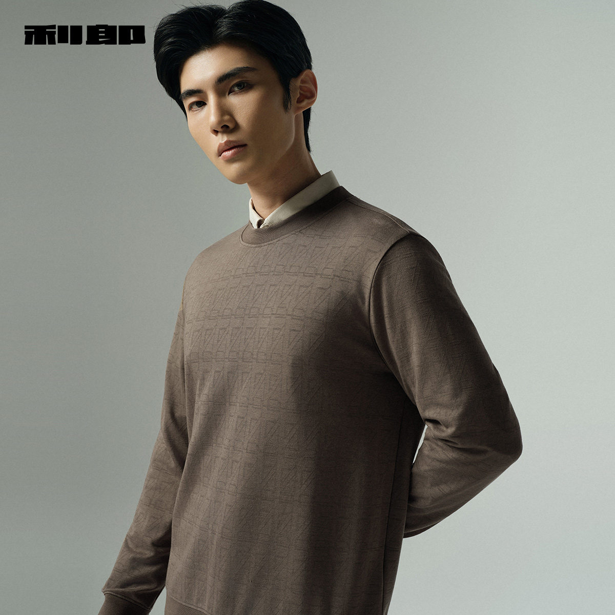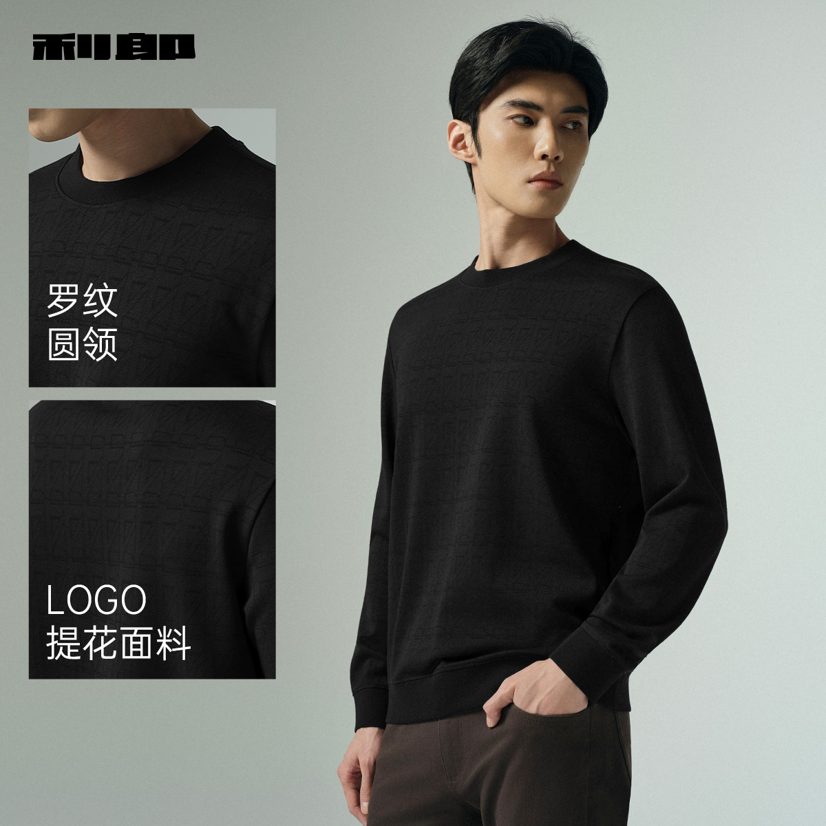 含绵羊毛 男装 利郎官方长袖 休闲圆领提花2025秋季 T恤 卫衣男士