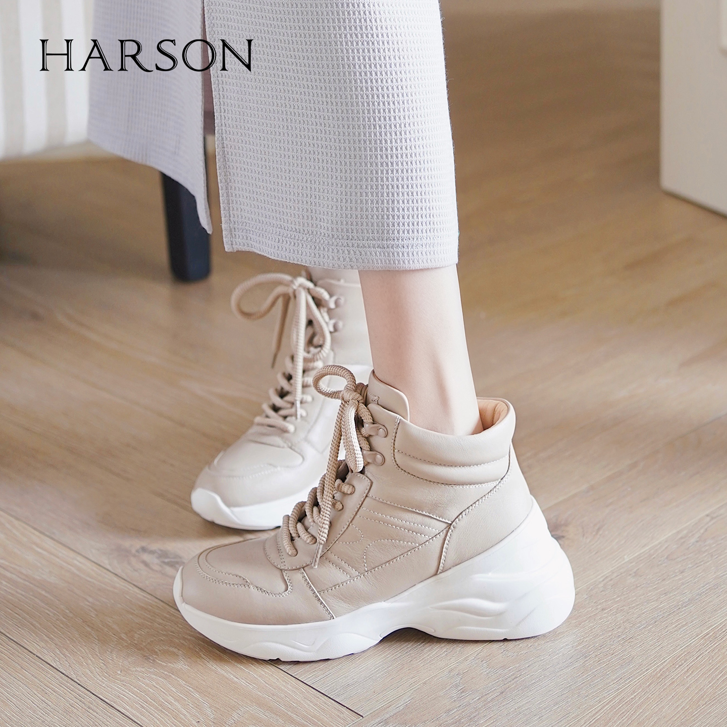2025冬新品 运动休闲女鞋 HCA256101 百搭旅游鞋 哈森厚底增高高帮鞋
