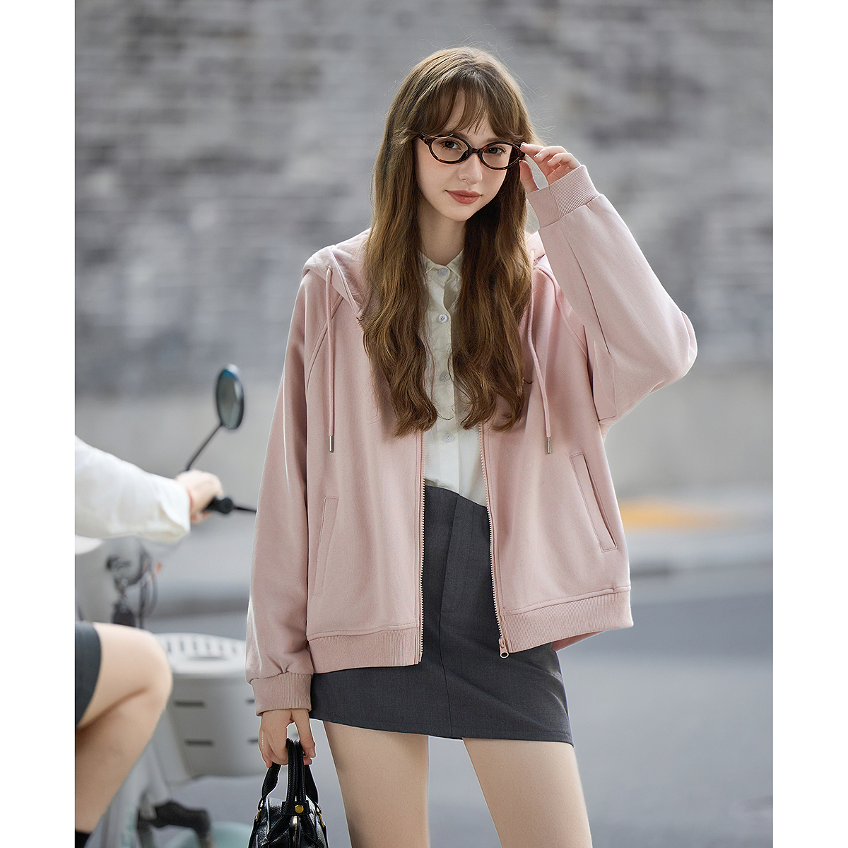 外套 卫衣女粉色甜美连帽拉链休闲运动开衫 yoe2025年秋季 新款