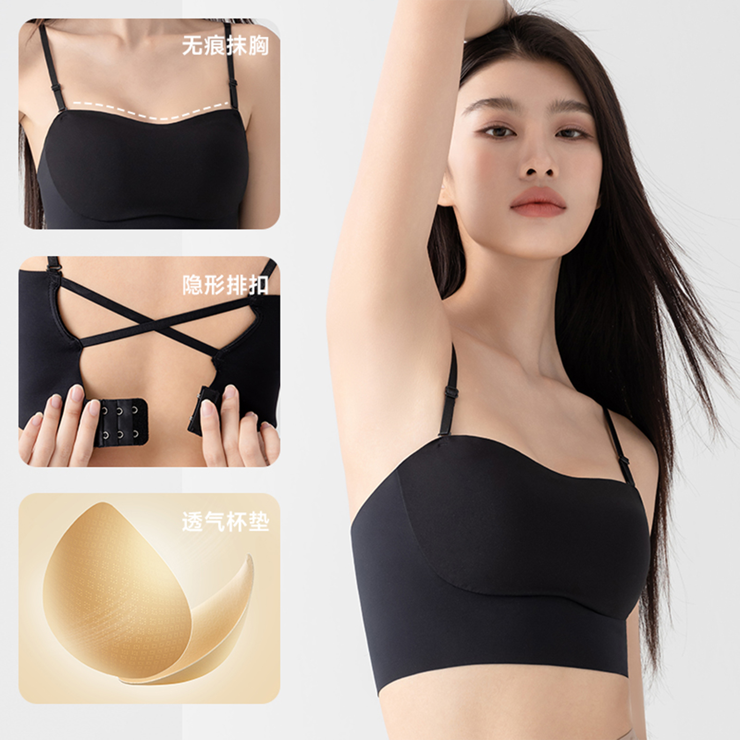 一字肩冰丝不带胸垫小吊带背心女内搭美背内衣女防走光裹抹胸裹胸