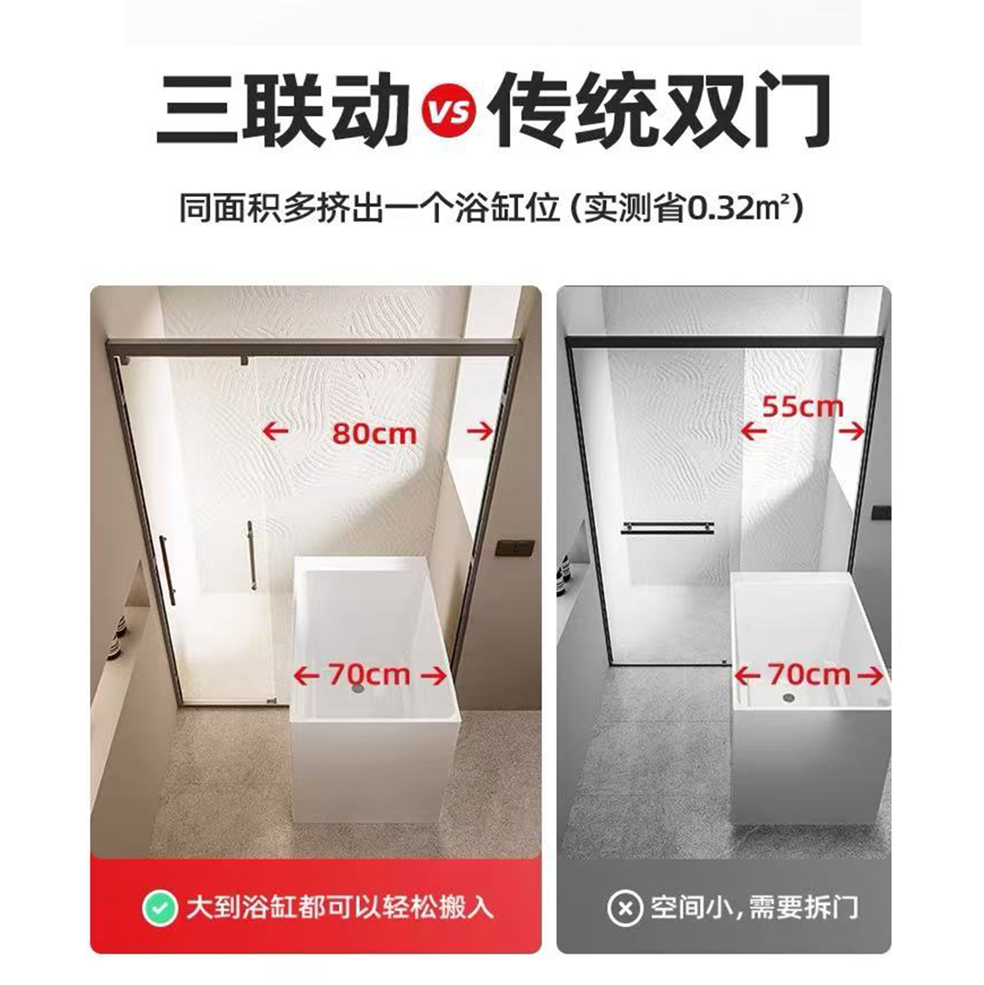 恋梵小户型极简淋浴房卫生间三门互动浴室玻璃隔断门干湿分离浴屏