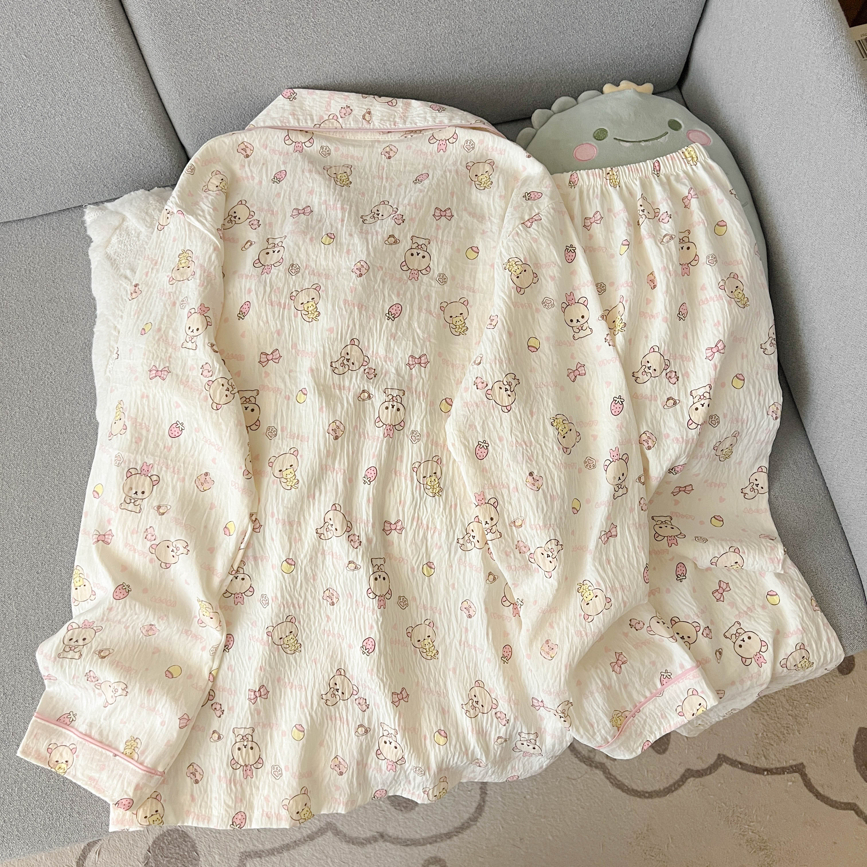 2025新款 套装 卡通腊肠狗家居服 长袖 猫人纯棉睡衣女士带胸垫春秋款