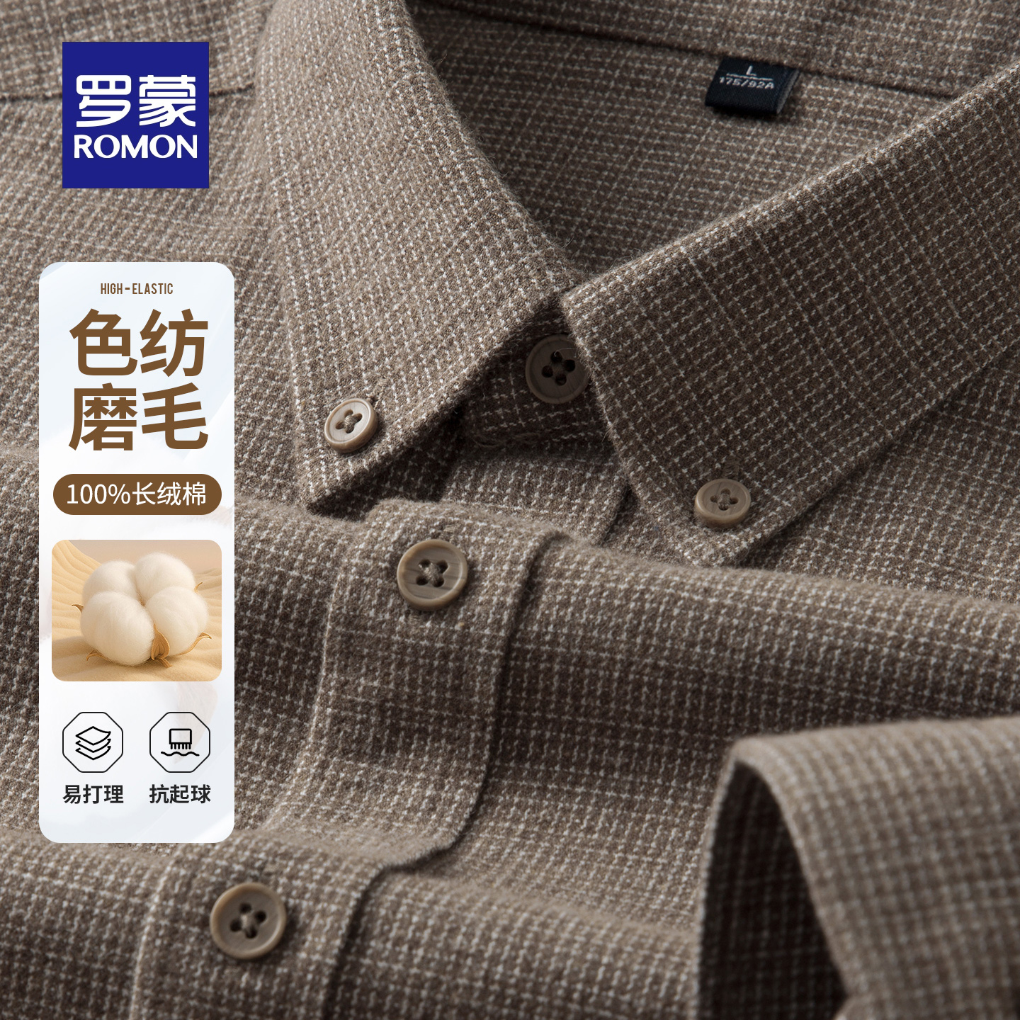 潮流复古格子长袖 衬衫 2025秋季 时尚 罗蒙男士 新款 翻领衬衣 纯棉