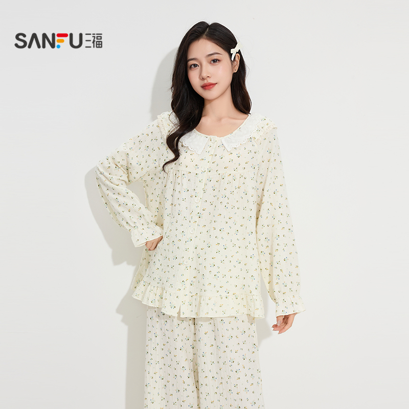 家居服套装 卡之恋长袖 纯棉加厚带胸垫冬睡裤 2025新款 睡衣女春秋季