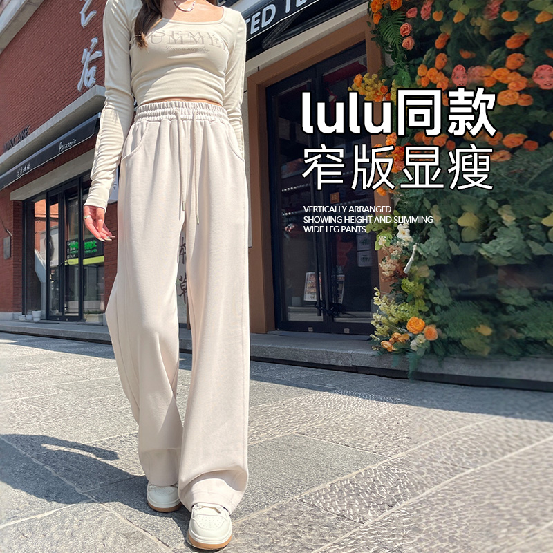 高级宽松bf慵懒垂感直筒加绒休闲阔腿裤 2025新款 子女春秋季 糯米裤