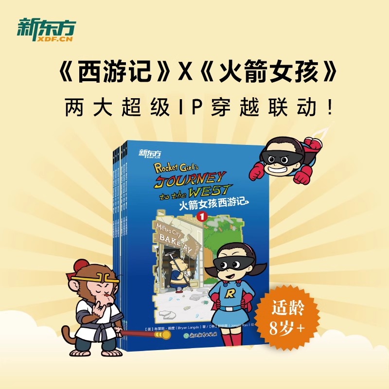 1本练习册 中小学生课外英文阅读必备rockey 英文版 14岁儿童漫画版 girl火箭少女儿童英语绘本故事书籍 火箭女孩西游记全6册
