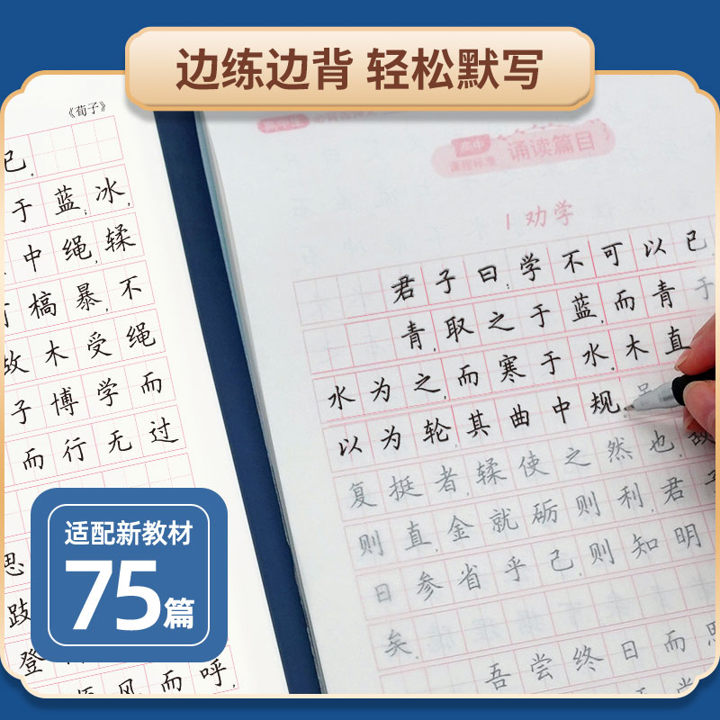 田英章高中生新课标必背古诗文75篇字帖书楷书字帖高中文言文高考75篇正楷入门硬笔钢笔临摹练字练初中字帖女生字体练字本高中字帖