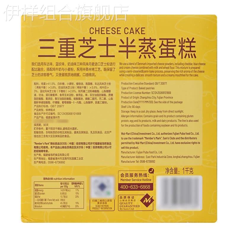 山姆官方旗舰店会员超市代购 零食三重芝士半蒸蛋糕进口芝士粉入口