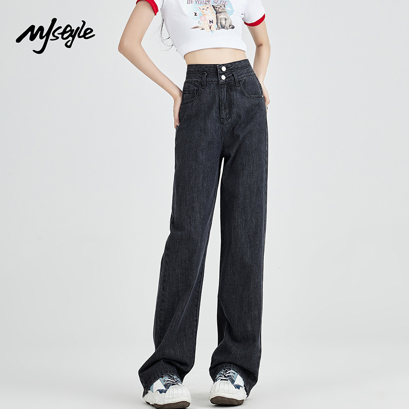 高腰小个子阔腿拖地裤 女2025年春秋新款 子 STYLE直筒牛仔裤