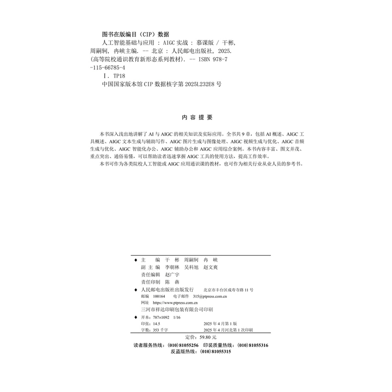 AIGC实战 冉峡大学教材人民邮电出版 慕课版 周嗣轲 社 高等院校通识教育新形态系列教材干彬 人工智能基础与应用
