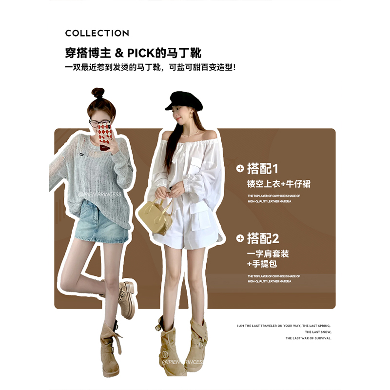 棕色马丁靴女2025新款 厚底两穿中筒骑士靴粗跟美短靴卡其色 夏季