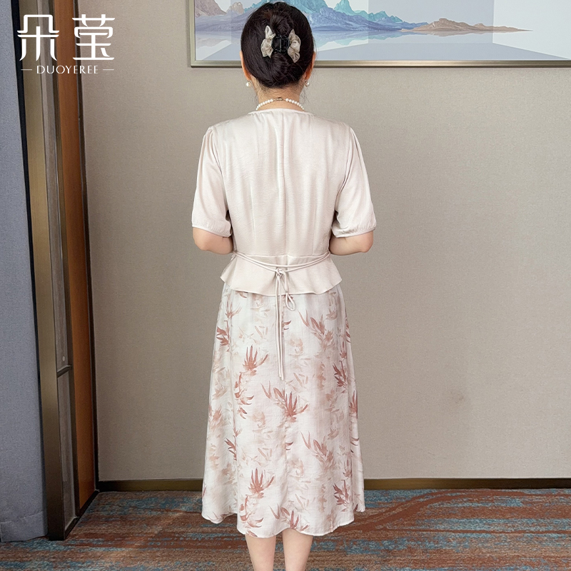 洋气时尚 中老年女装 假两裙子 端庄大气连衣裙2025新款 朵莹妈妈夏装
