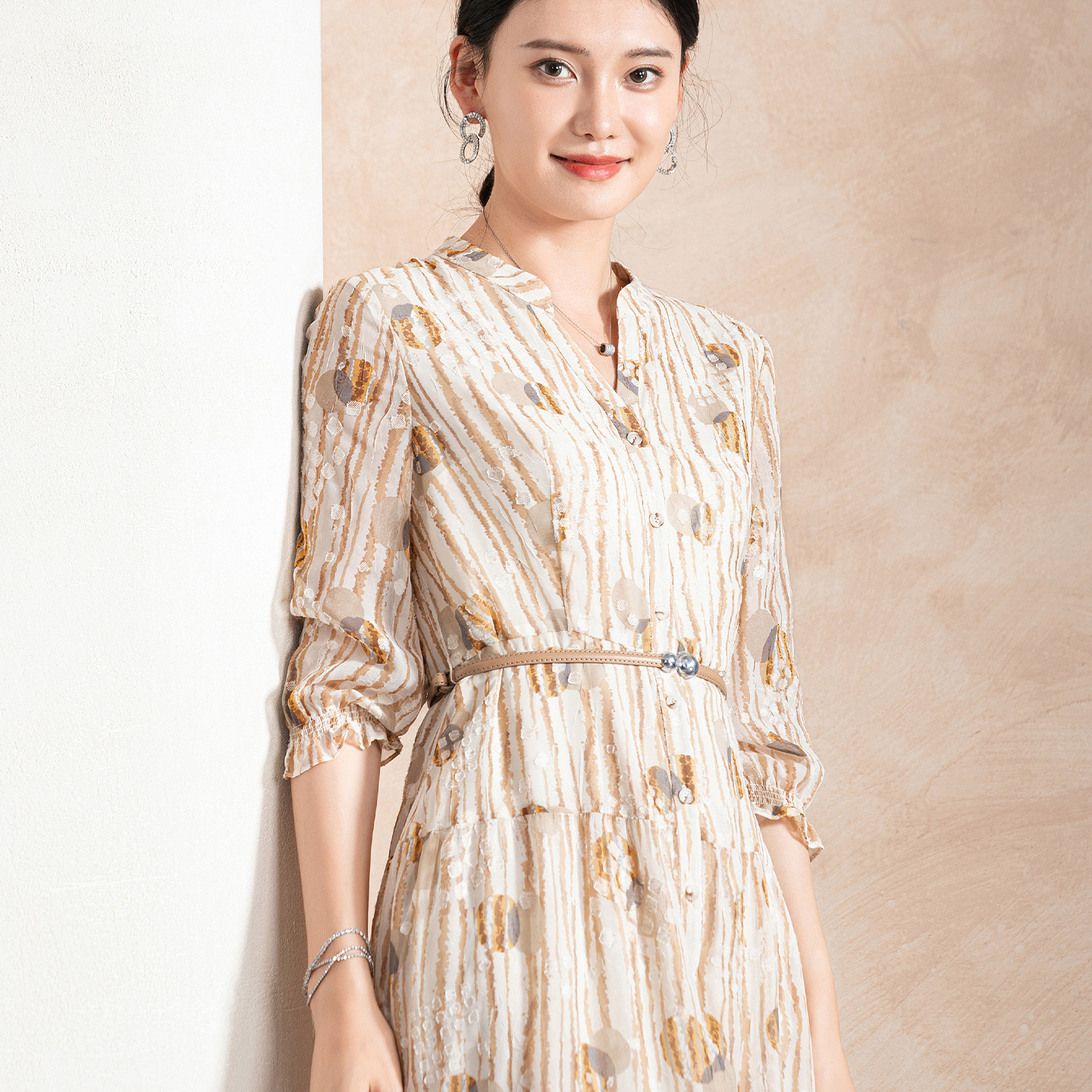 交叉绑带方领长裙 淑女风含棉法式 Vero Moda连衣裙女2025秋新款