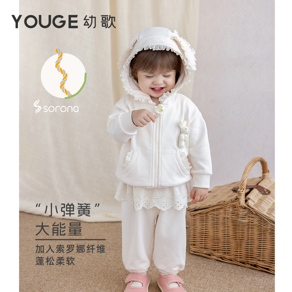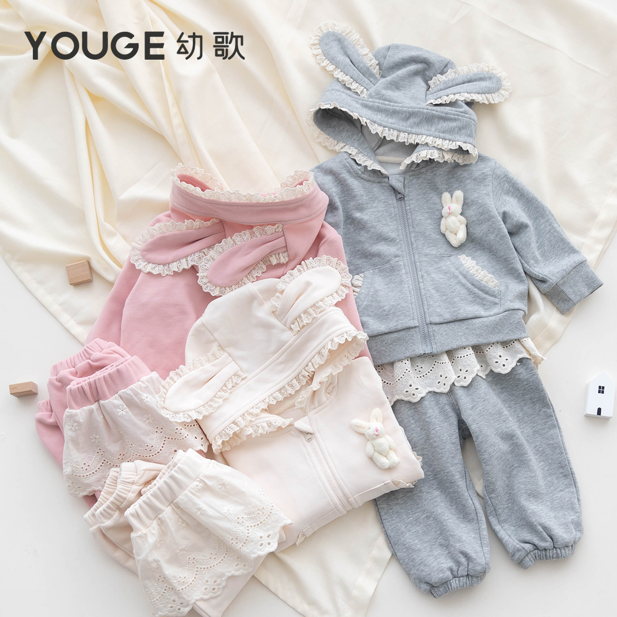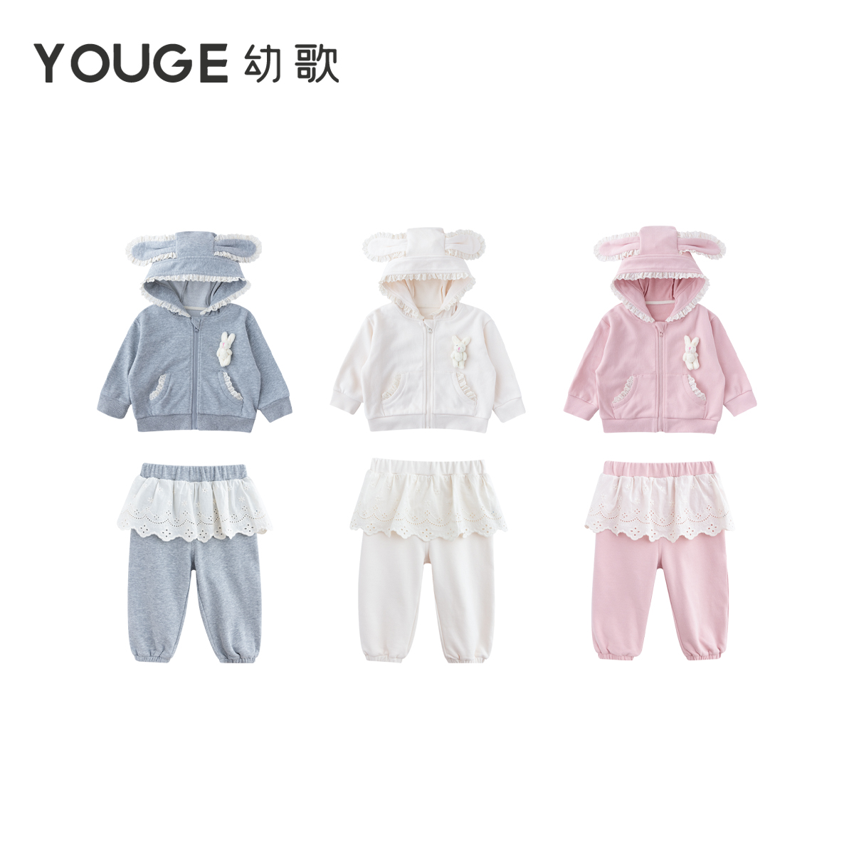 套装 YOUGE幼歌 柔软兔子连帽外套亲肤舒适花边卫裤 新款 婴幼儿秋季