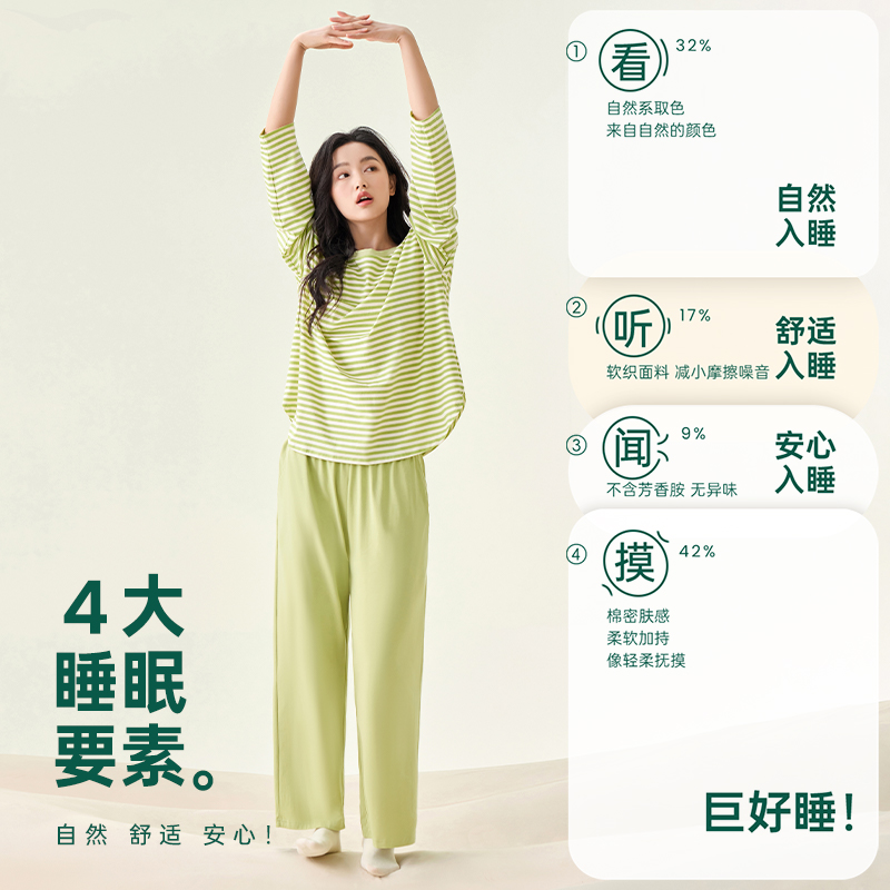 女士秋季 冰丝莫代尔情侣新款 睡衣 男款 蕉内棉棉506Sleep家居服套装