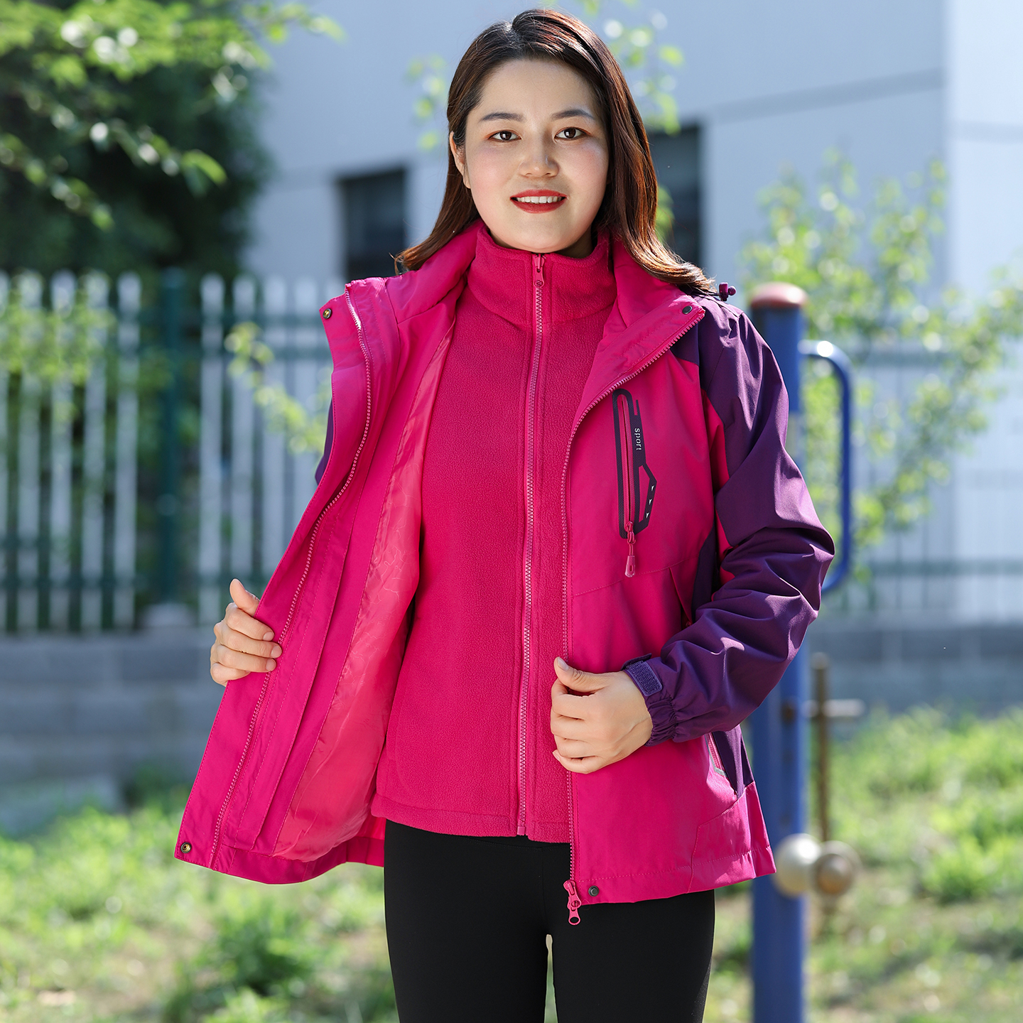 秋冬装 外套加厚绒内胆三合一防风胖MM外套女 妈妈冲锋衣两件套大码