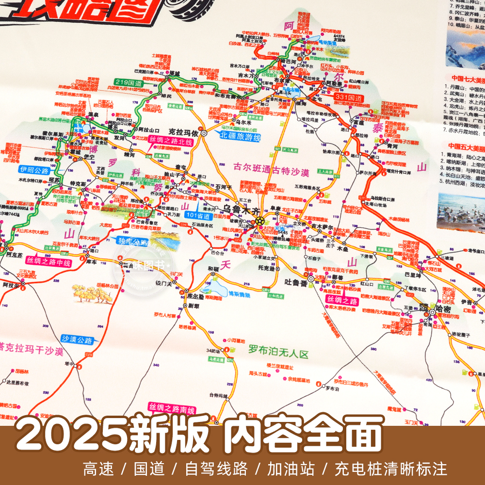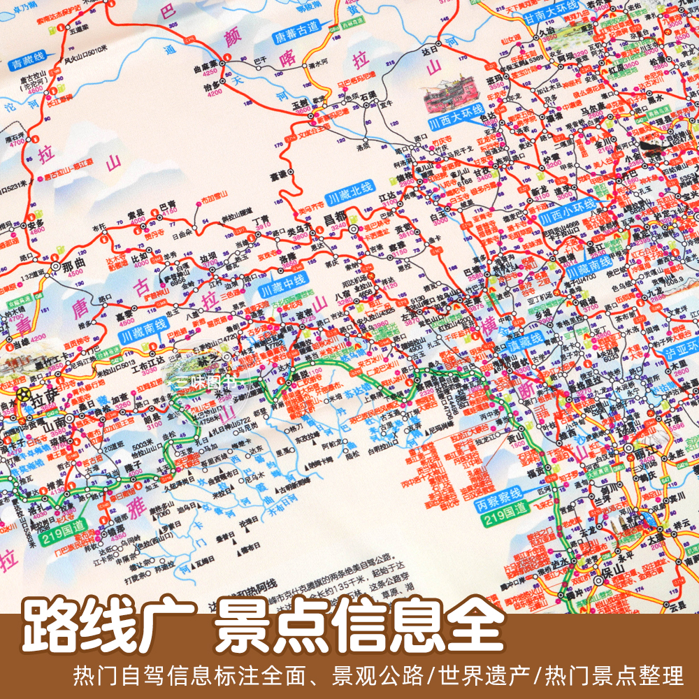 29条自驾线路大环线全景线路图八大进藏线路 中国旅游2025新版 展开约1.2米超大 丝光云锻材质 行车路线规划 自驾攻略地图丝绸版