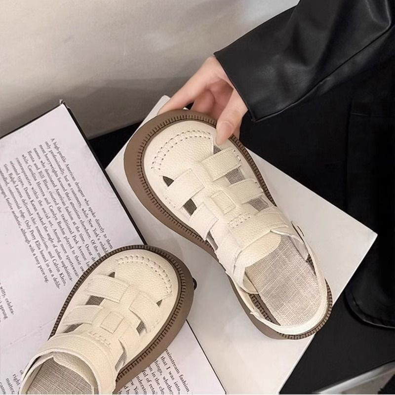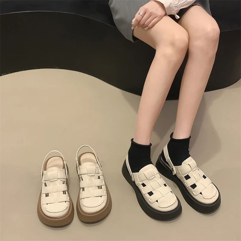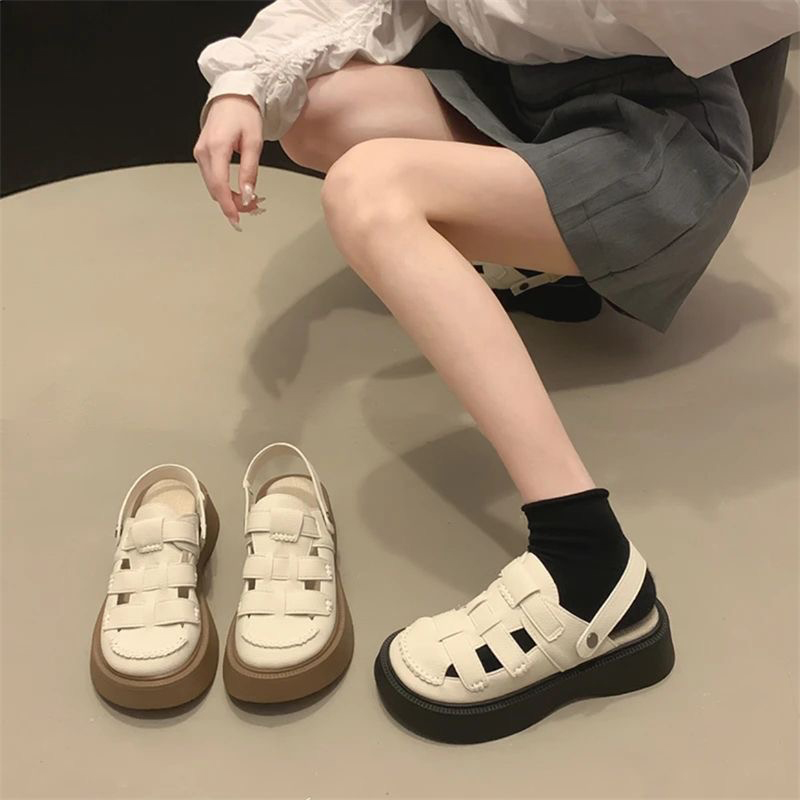 女2025年夏季 外穿鞋 新款 厚底半拖鞋 子 洞洞罗马鞋 两穿镂空包头凉鞋