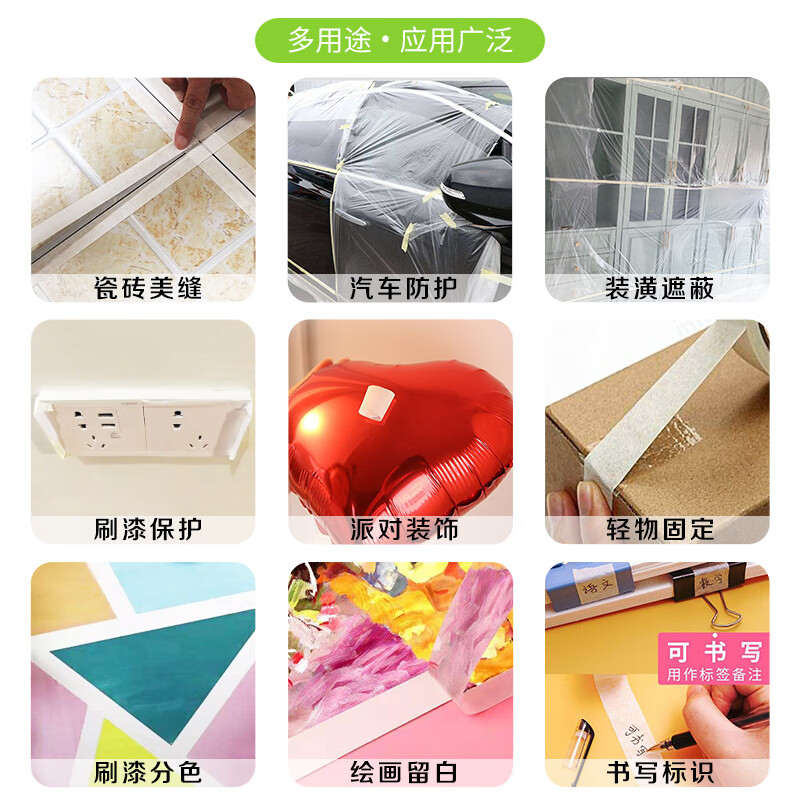 美纹纸胶带美术生水彩绘画专用可书写不残留手撕无痕胶布汽车喷漆分色纸喷漆装 修遮蔽专用耐高温批发美文贴纸