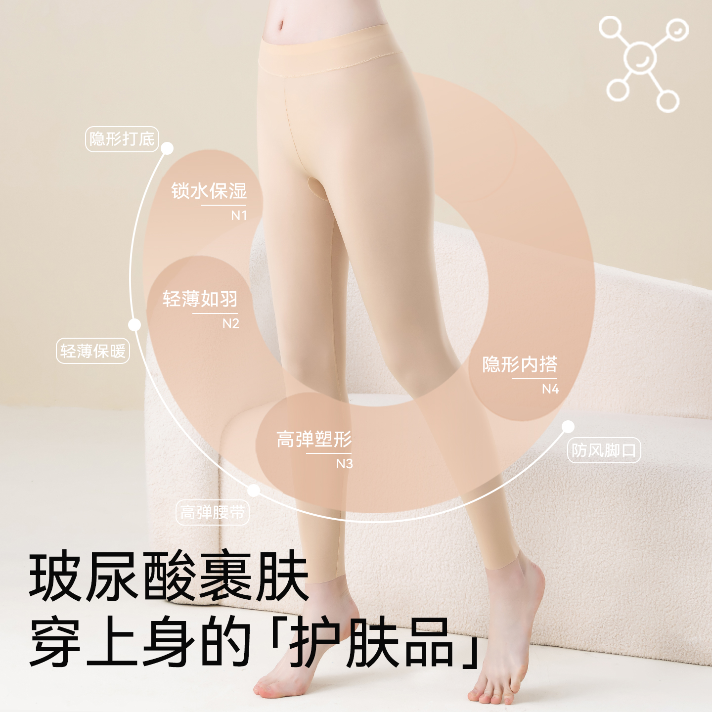 秋冬季 玻尿酸美肤肌底裤 新款 内穿打底高腰秋裤 超薄保暖裤 线裤 女款