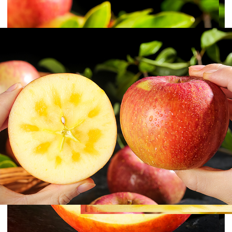 黄金奶油富士苹果9斤新鲜水果山东烟台白色牛奶脆甜平果整箱 包邮