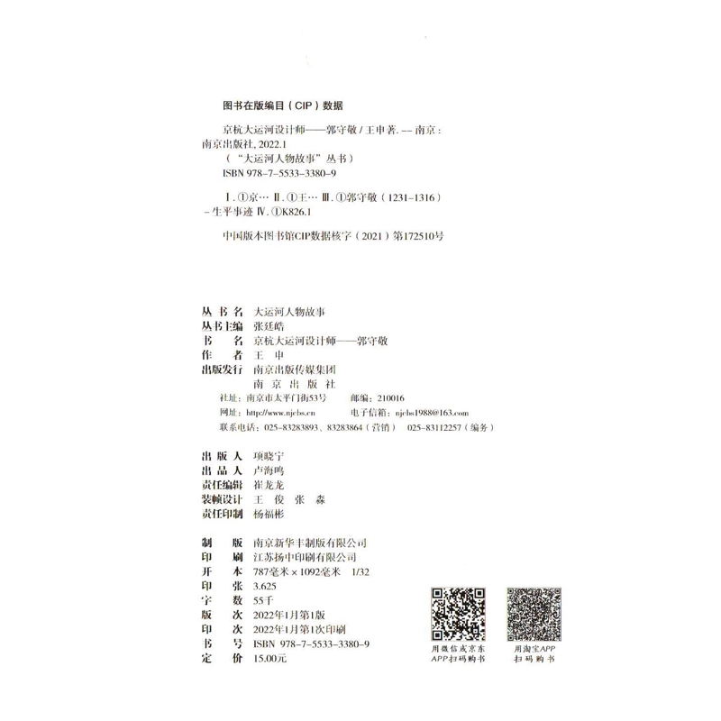 京杭大运河设计师:郭守敬王申著史学理论南京出版 社新华书店正版