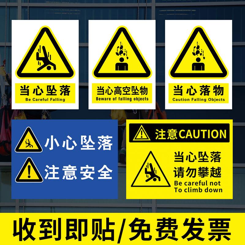 当心坠落警示牌小心坠落警示牌防坠落标识高空坠落危险警示牌禁止攀爬贴纸高空坠物提示注意安全告示标志定制