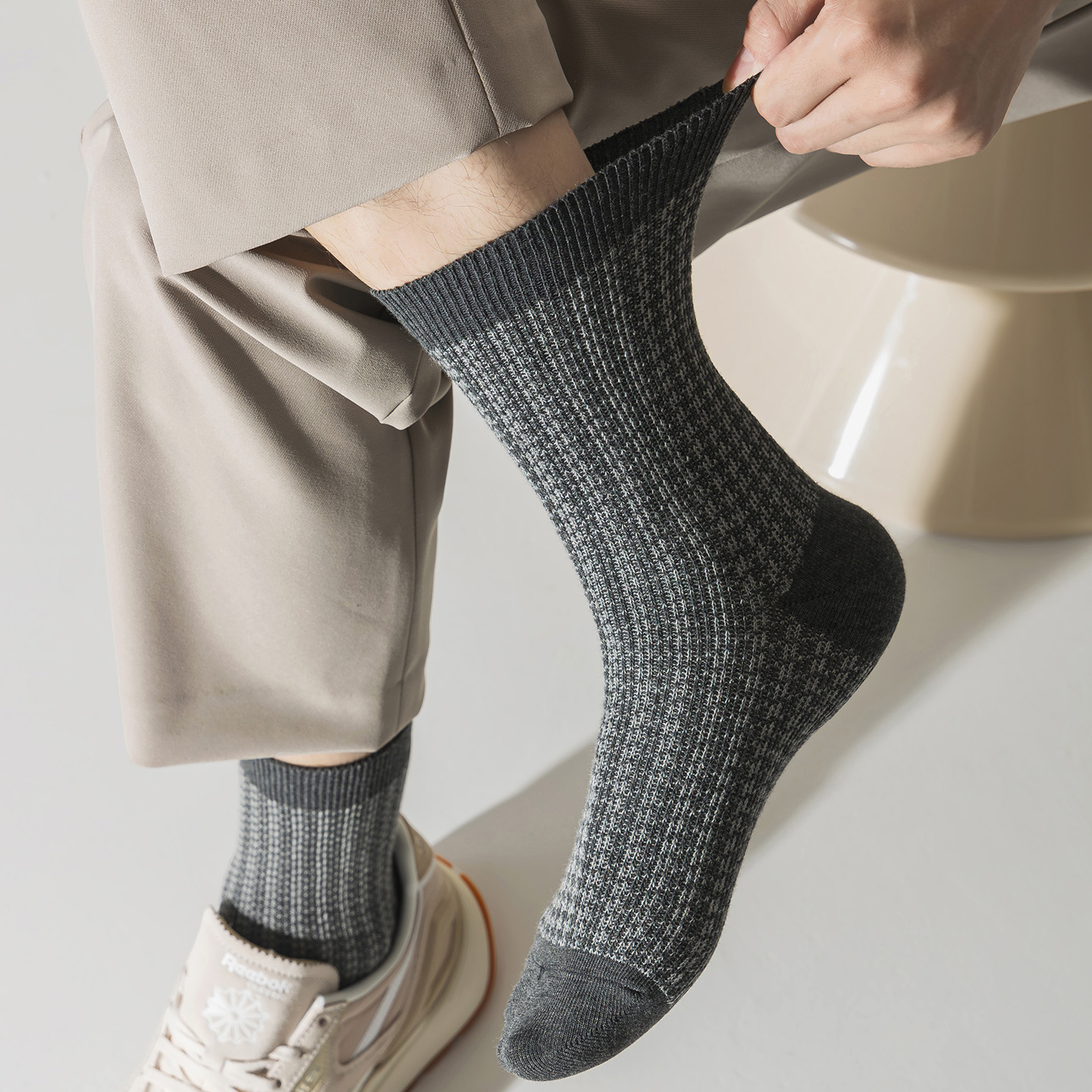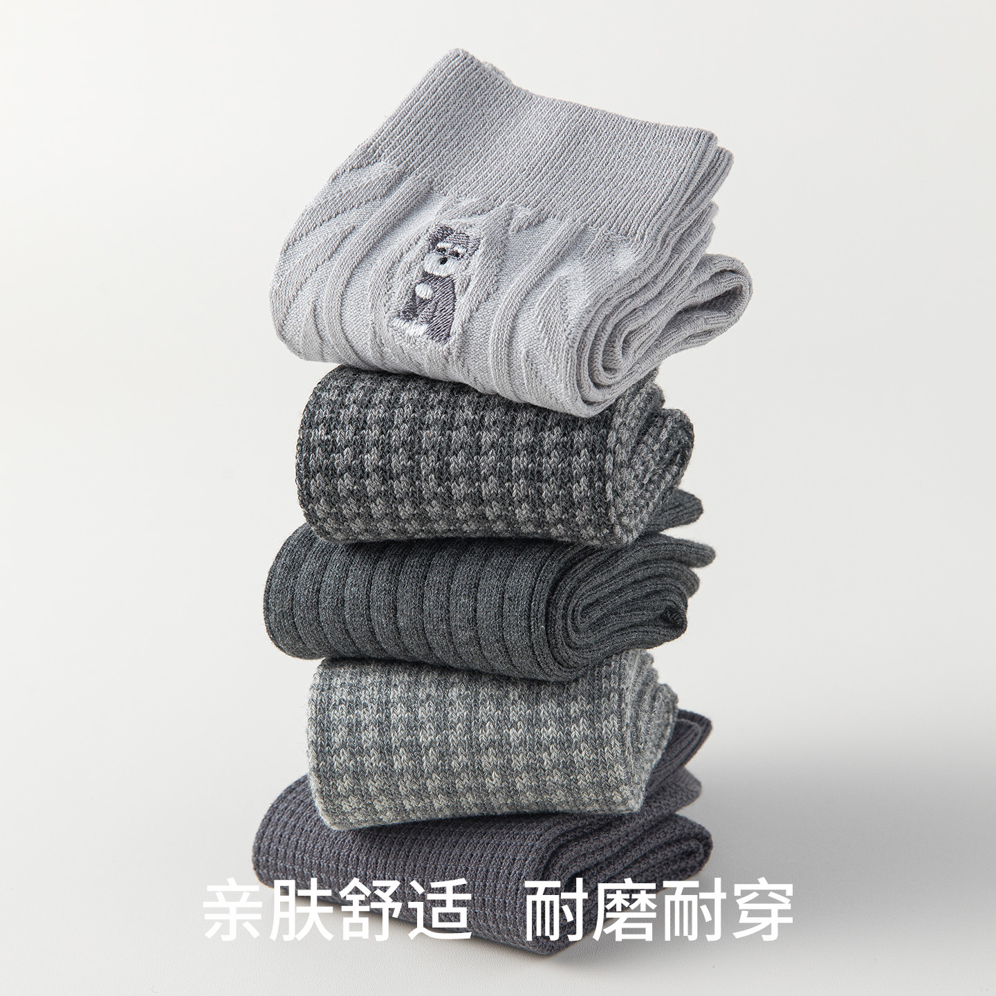 棉伙棉伴海藻袜舒适抗菌防臭男女商务运动纯色裸感中筒袜
