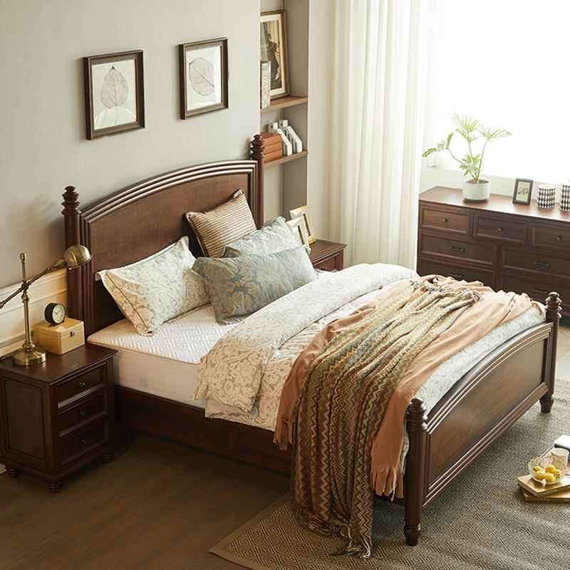 乡村核桃木全实木双人床1.8米罗马柱气压床1.5 简约美式 特价 福利款