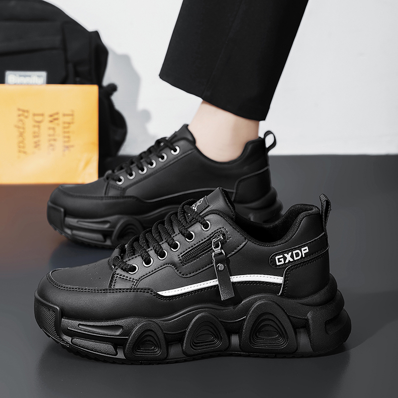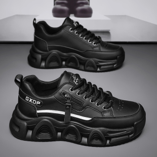 青少年学生休闲跑步老爹潮鞋 潮流百搭黑色厚底增高运动鞋 秋季 男鞋