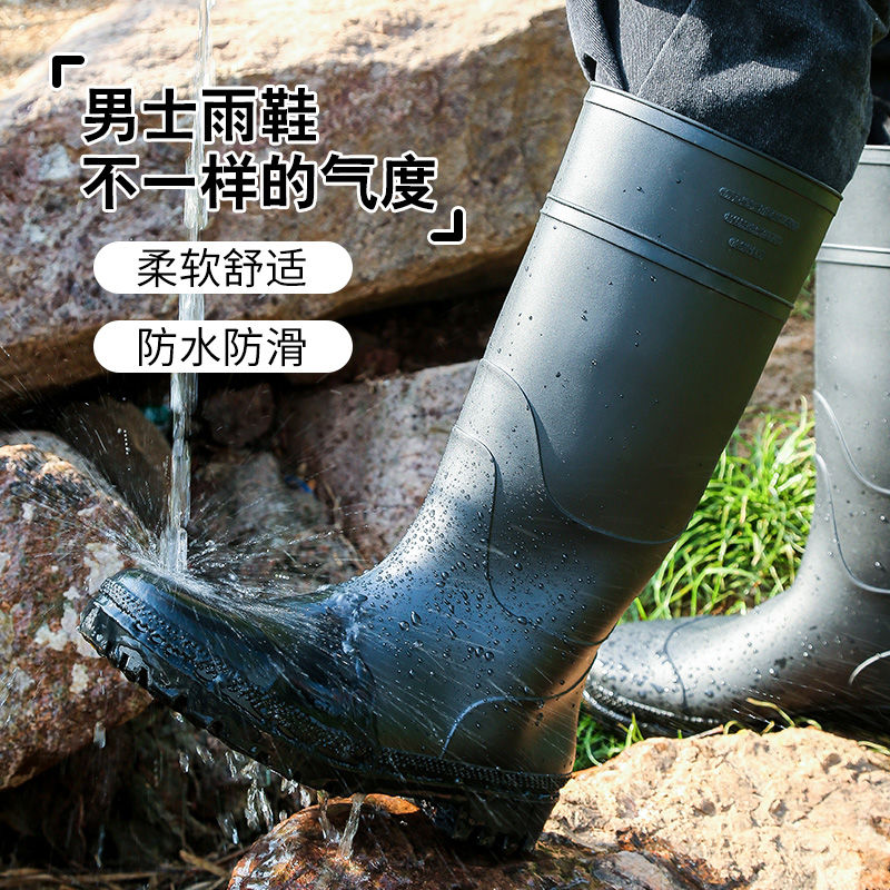 野钓洗车套鞋 成人高筒户外防滑水鞋 劳保工地耐磨防水胶靴 男款 雨鞋