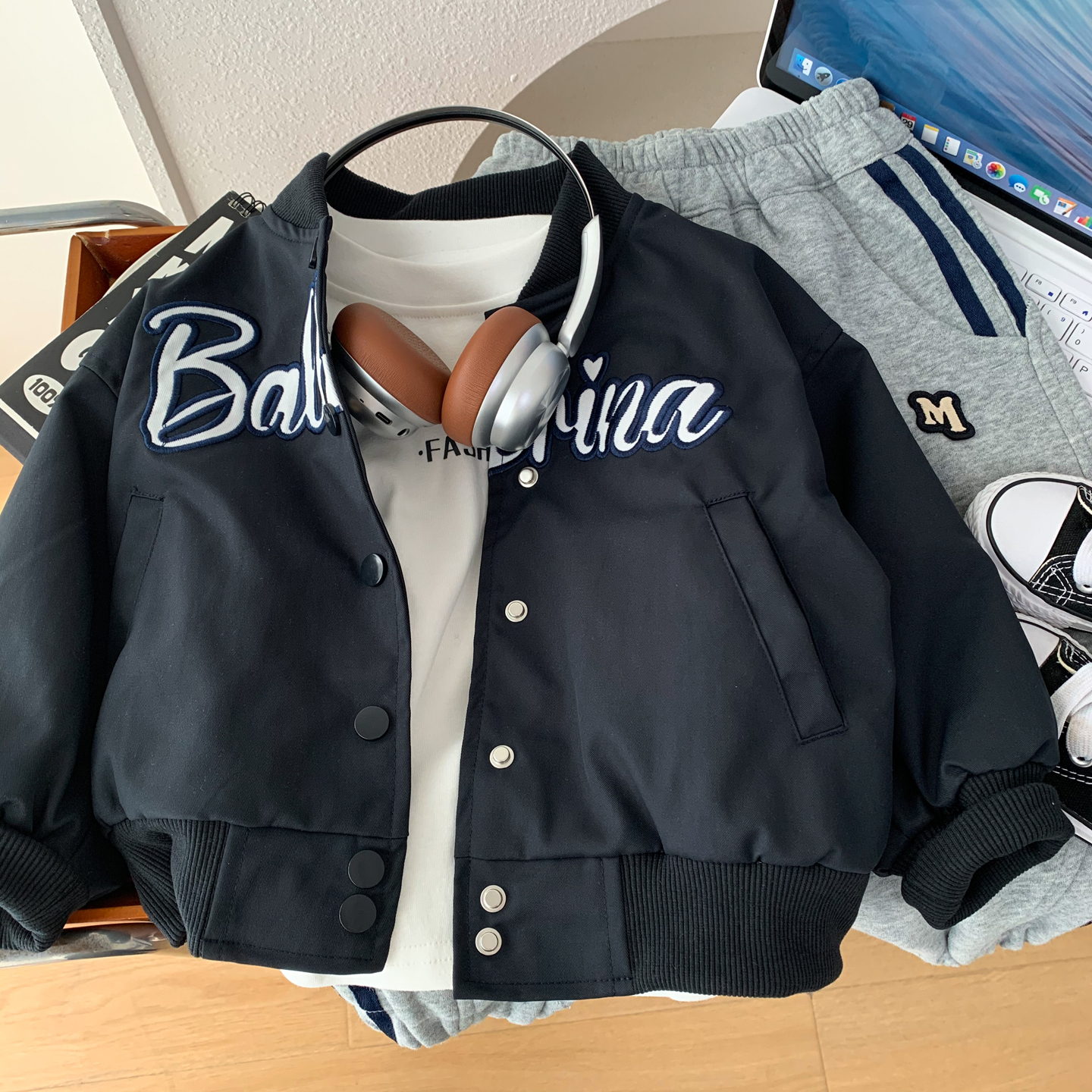中小童宽松休闲上衣潮 酷帅夹克衫 男童棒球服外套2025新款 儿童韩版