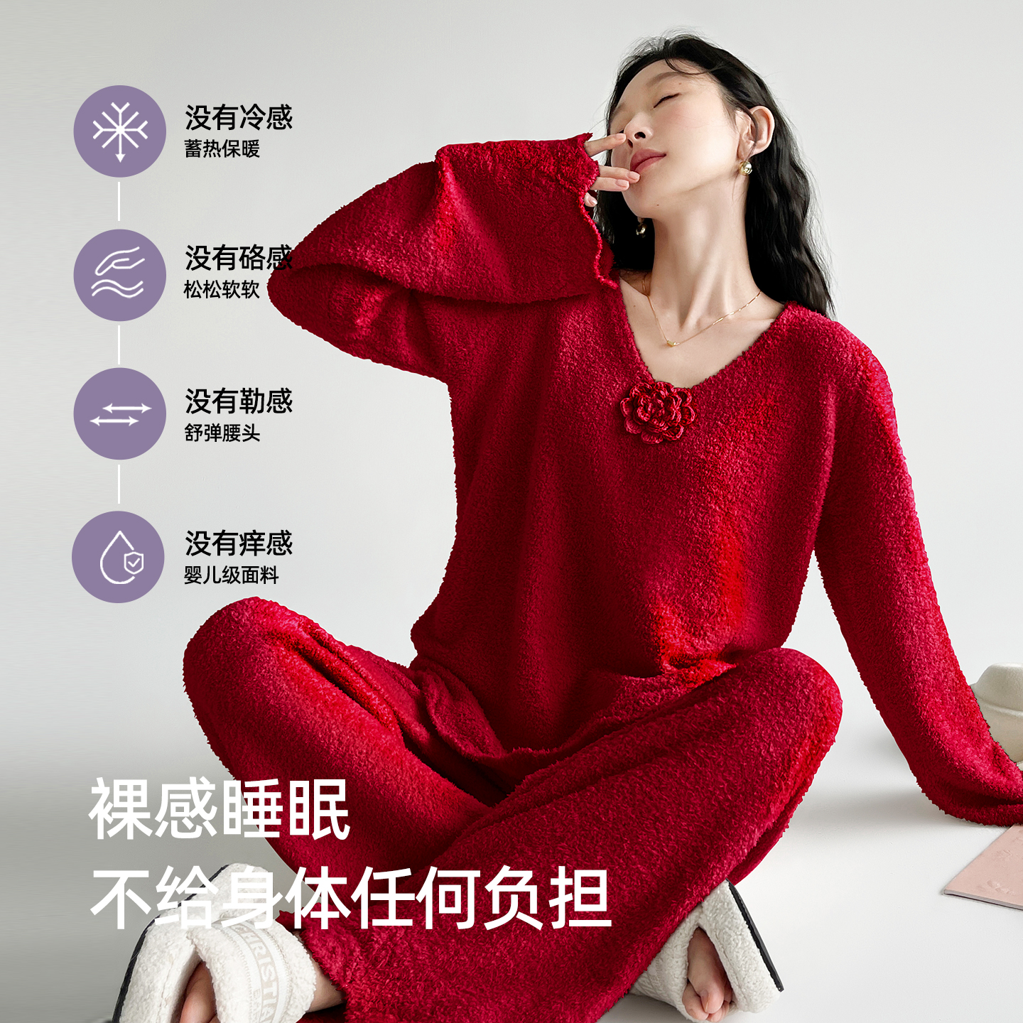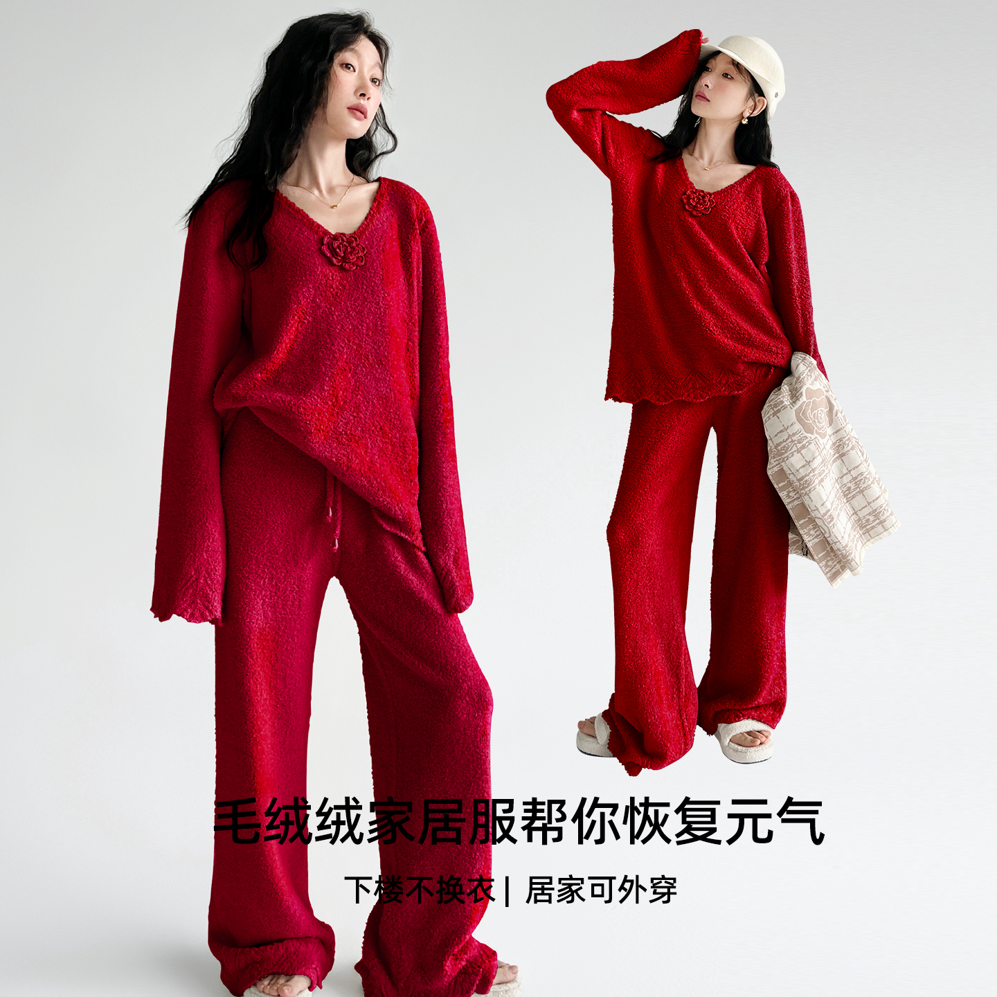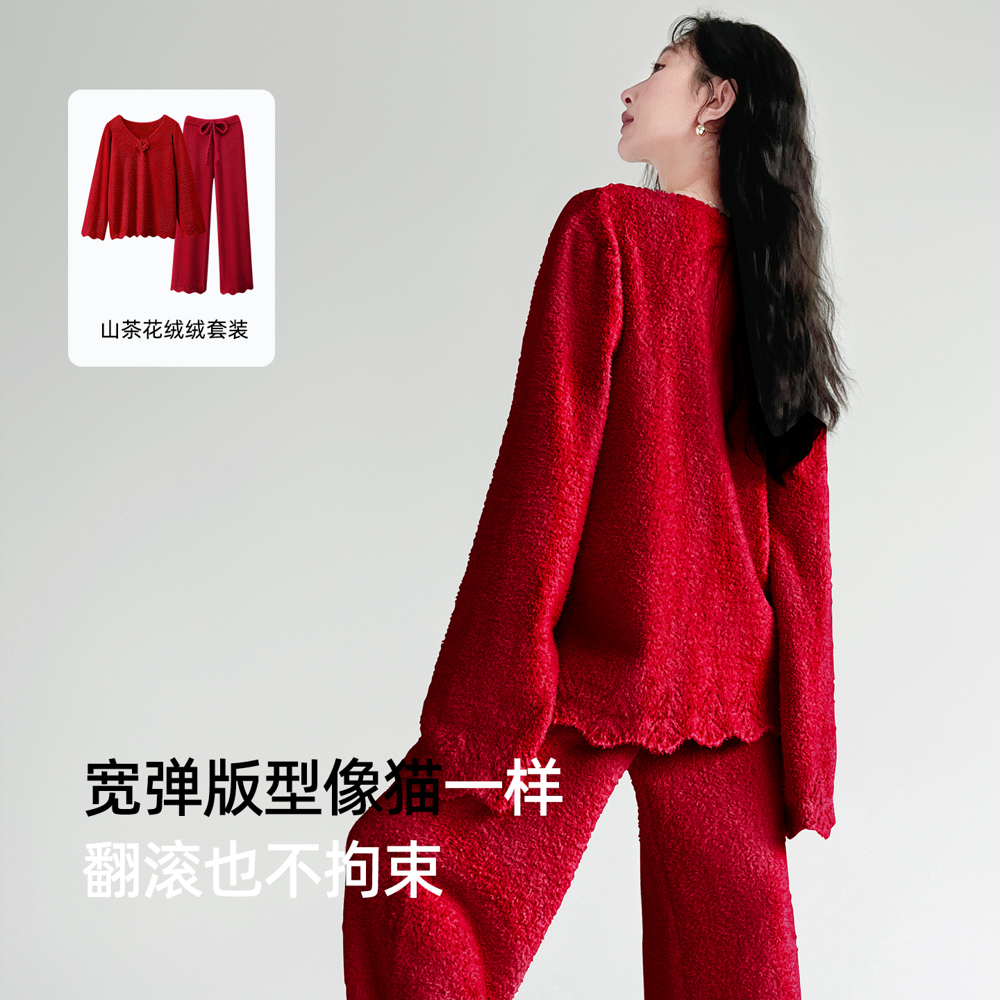 helloyashute高级感红色结婚半边绒秋冬季 加绒女士可外穿家居服