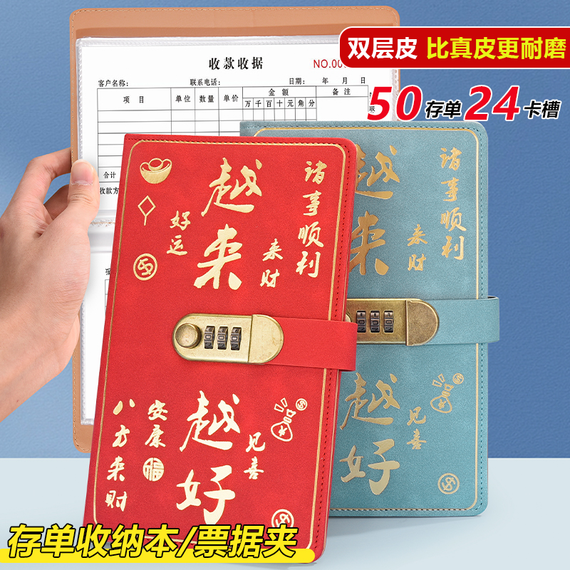 2025新款 锁票据存单发票收藏夹现金理财收纳册 大容量存折单据收纳本多功能密码
