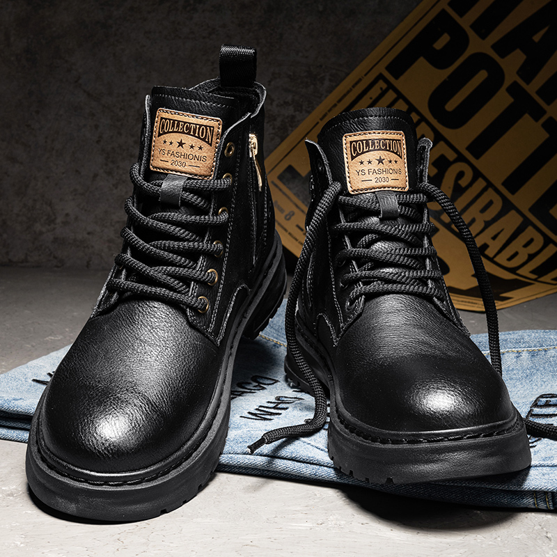 中帮机车靴子男生增高皮靴 2025新款 马丁靴男款 英伦风黑色高帮皮鞋