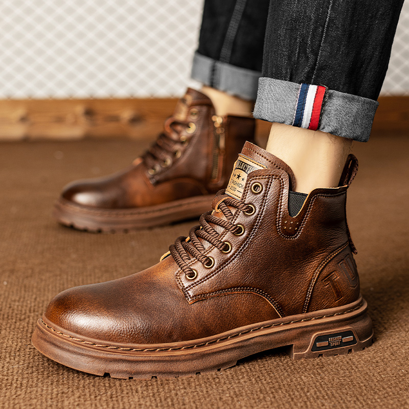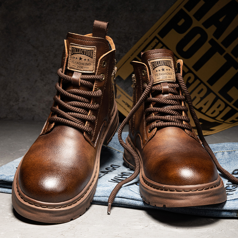户外登山大黄靴子男 靴男款 海澜之家男鞋 马丁靴真皮英伦风加绒工装