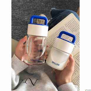 ins玻璃杯杯子卡通吸管杯勺刻度牛奶杯早餐杯情侣用微波炉便携