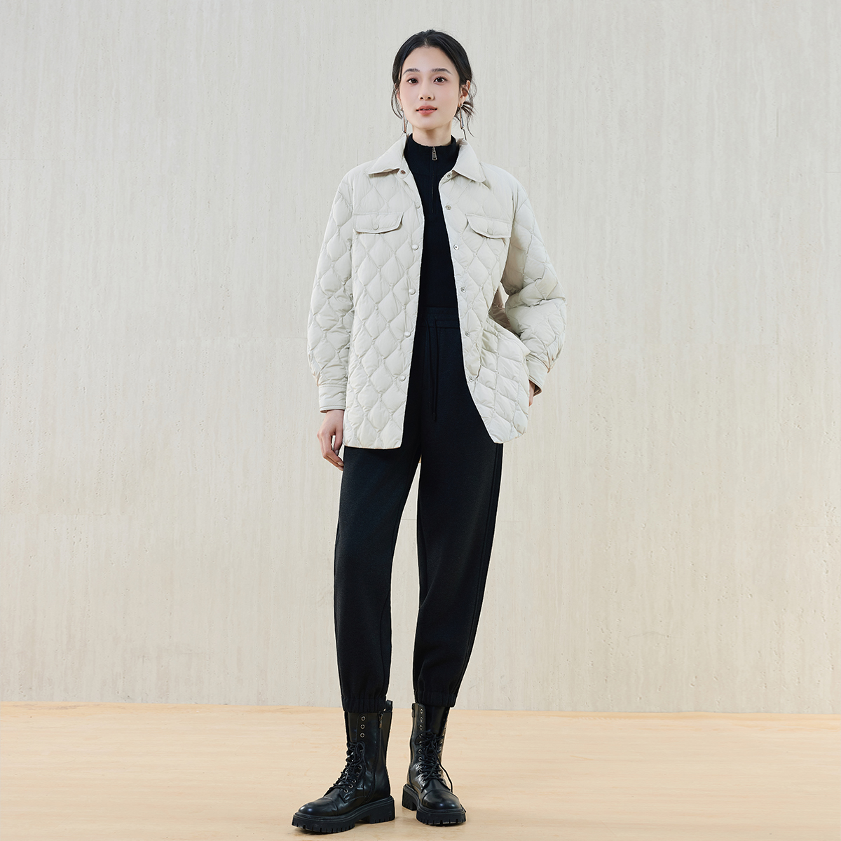 式 太平鸟衬衫 羽绒服女25新女士保暖内搭短外套 轻薄奶布丁