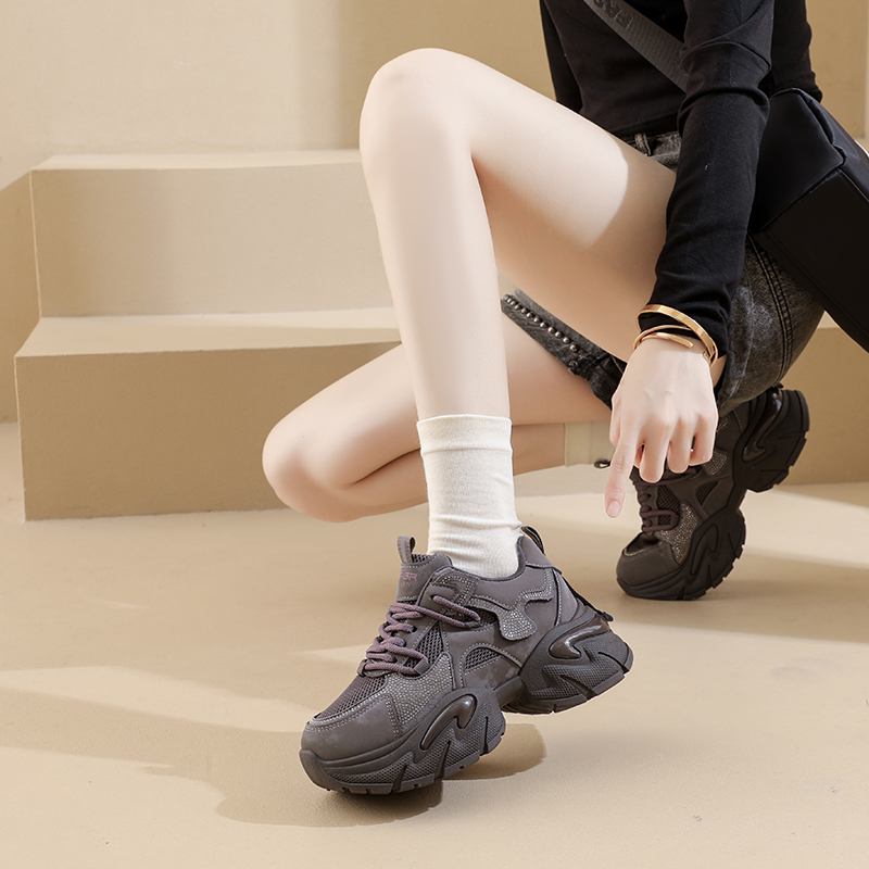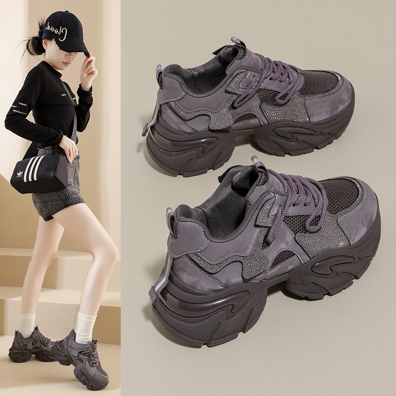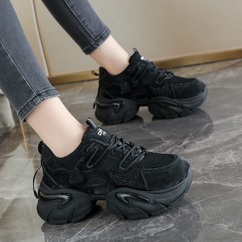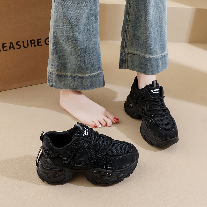 子34小码 增高老爹鞋 黑色厚底运动休闲鞋 新款 ins潮超火 女2025秋季
