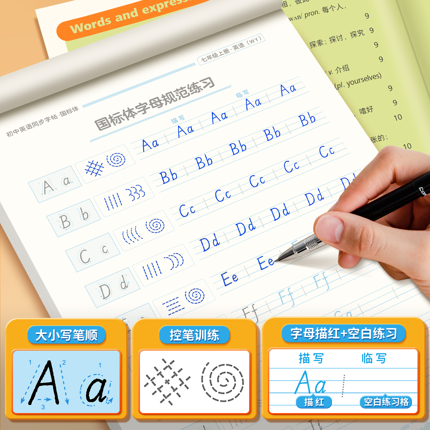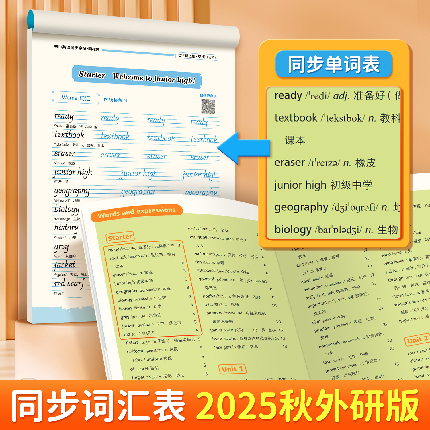 8年级英语练字帖课本同步七八年级上册英语字帖初一初二初中生专用字帖斜体每日一练字母单词练习 斜体国标体7 2025秋新版 外研版