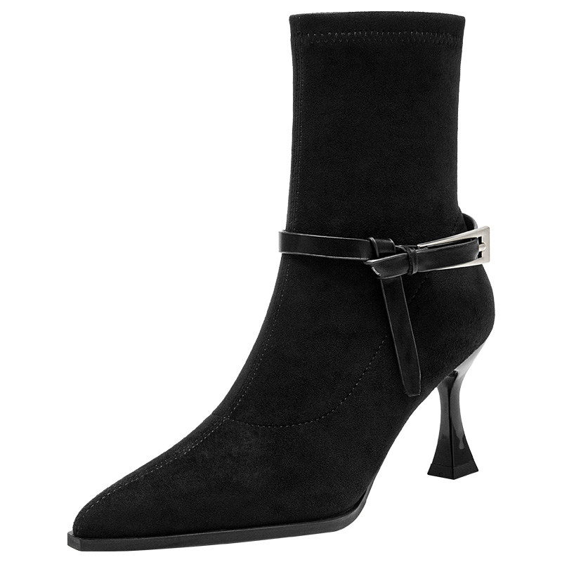 大东细跟尖头短靴女2025新款 气质百搭高跟靴子弹力瘦瘦靴袜靴 秋季