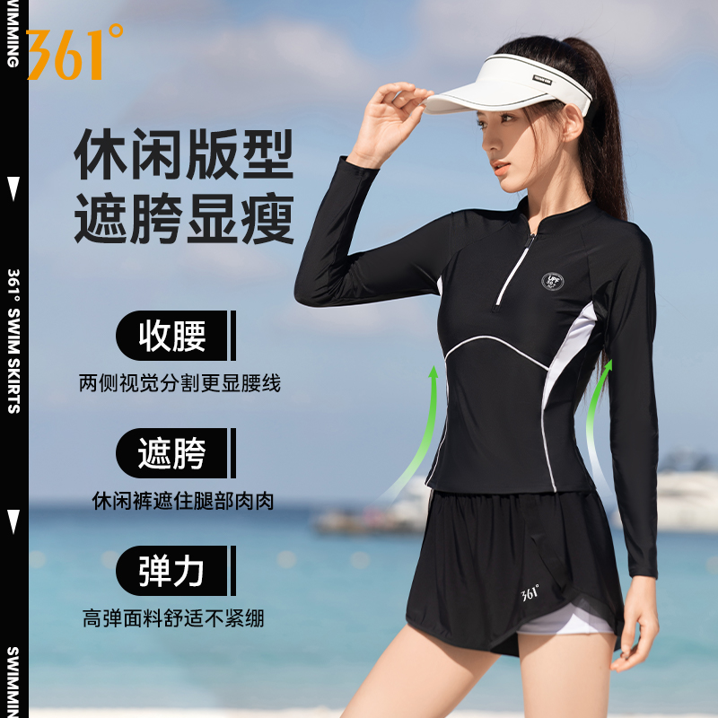 运动游泳衣 初中生大码 361女士分体泳衣长袖 平角成人防晒2025新款