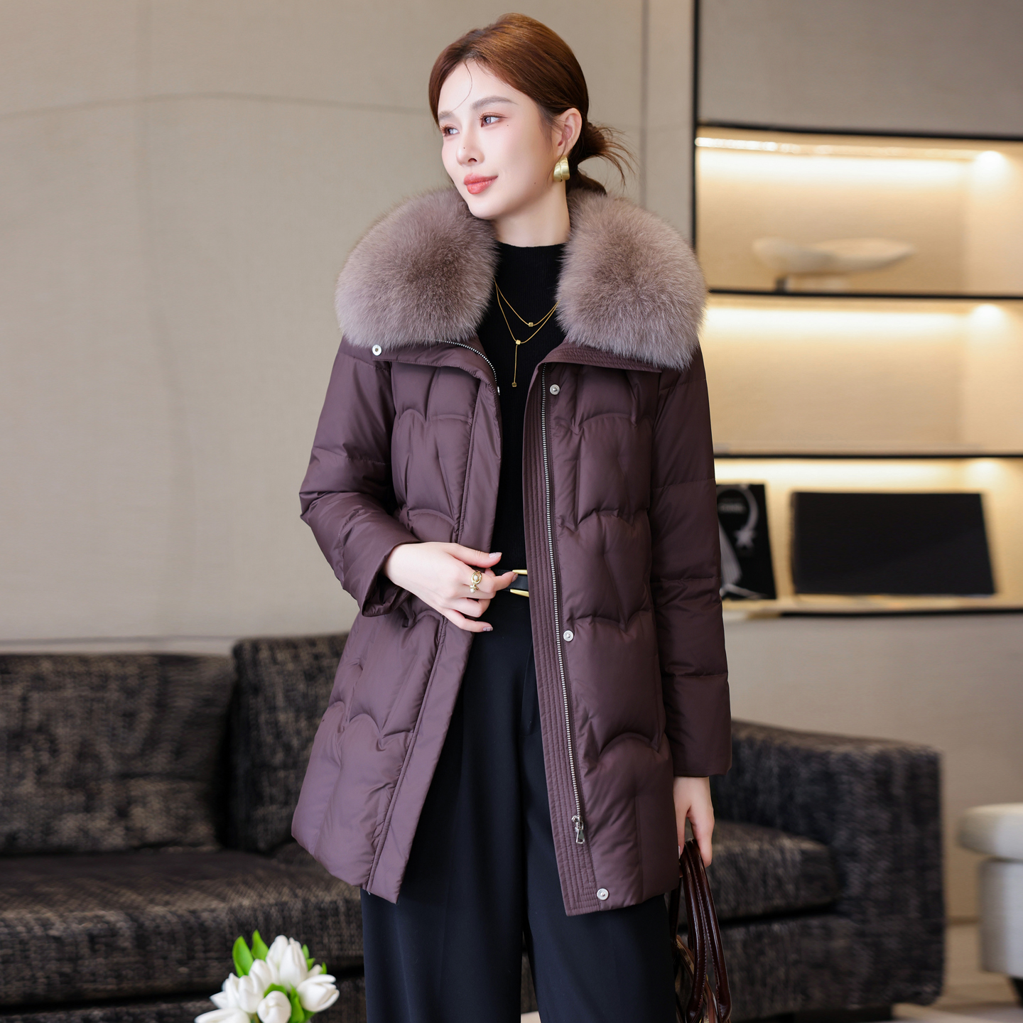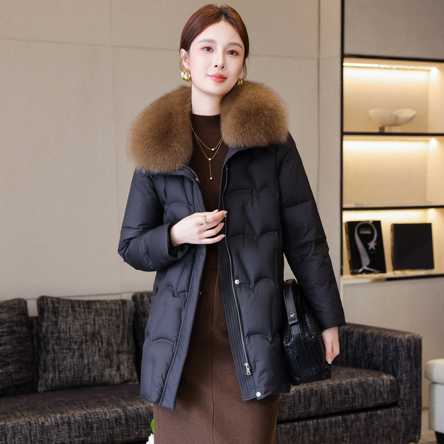 加厚保暖白鹅绒狐狸大毛领外套 冬季 海宁羽绒服女中长款 2025新款