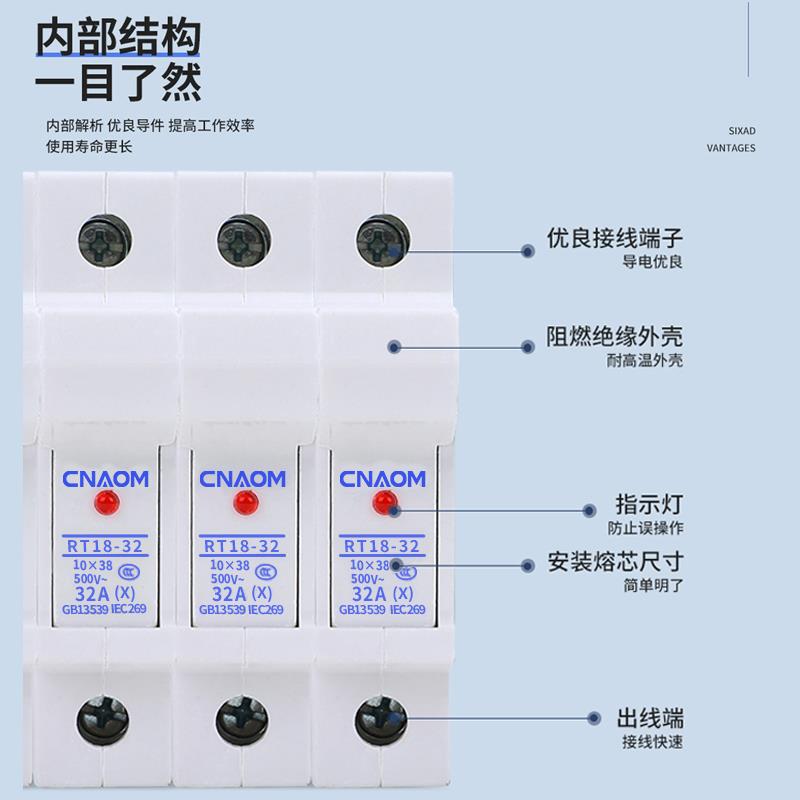 导轨按装 1P2P3P4P 保险丝熔断器底座保险丝座带指示灯 32X RT18
