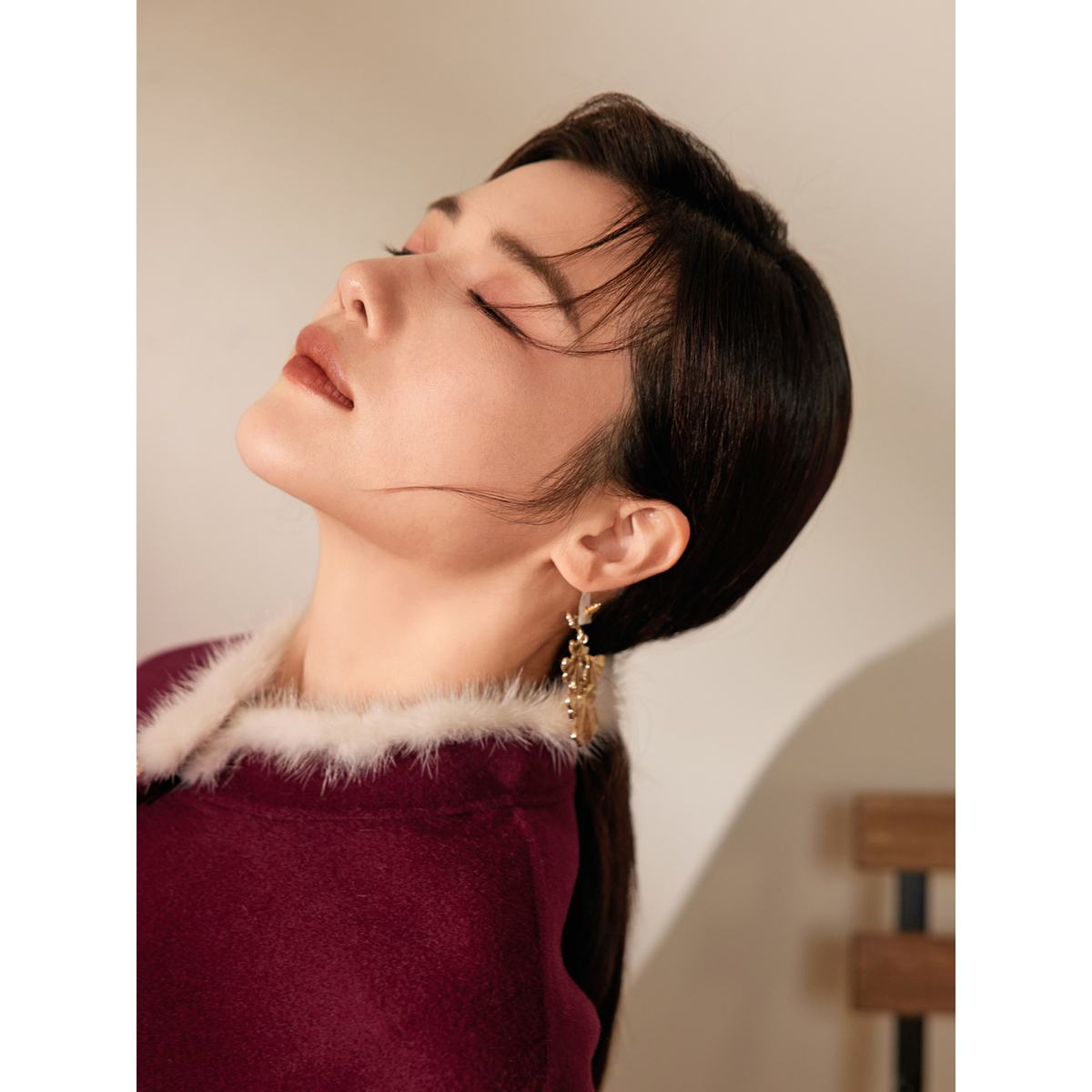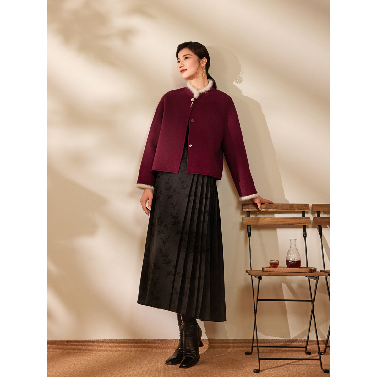 新款 2025冬季 秋水伊人优雅翻领毛呢外套 通勤大衣 100%绵羊毛