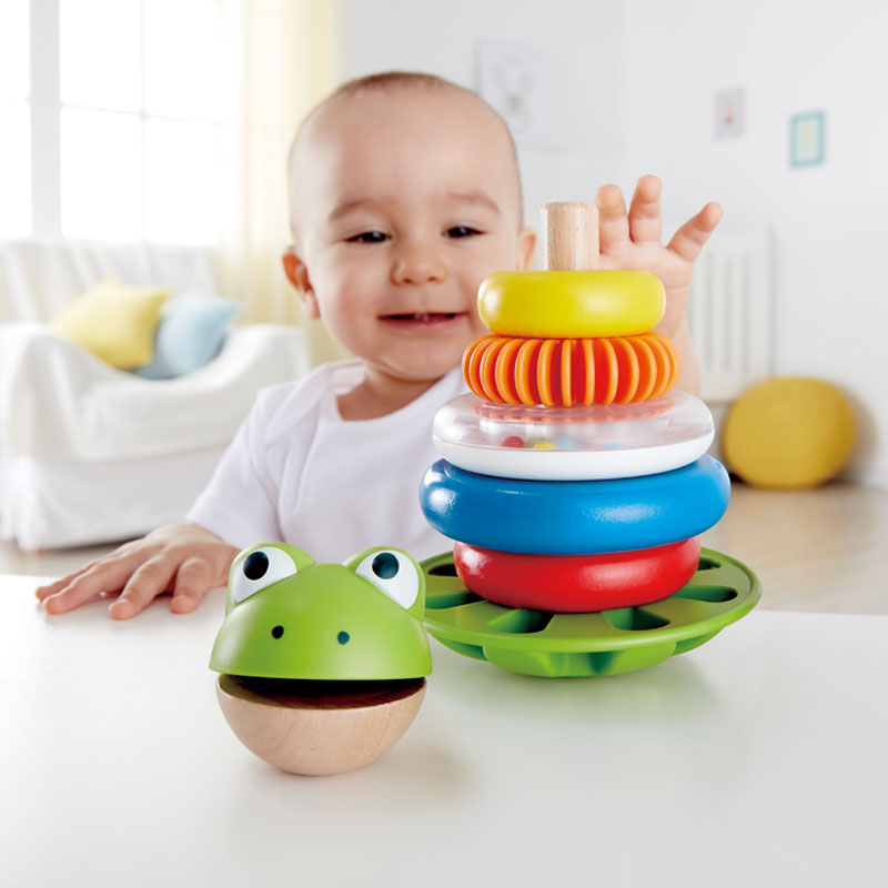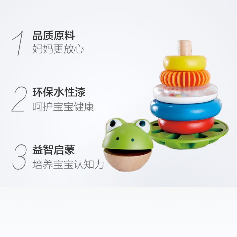 Hape叠叠圈青蛙圆环堆塔彩虹套圈宝宝益智儿童玩具不倒翁