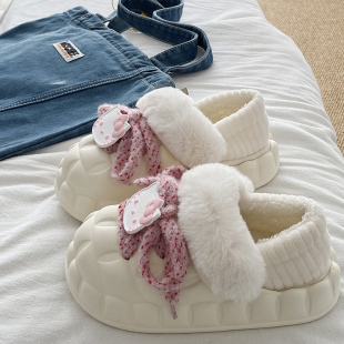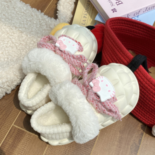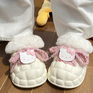 可拆卸 女士EVA防滑不臭保暖棉鞋 2024冬季 家居可爱KT猫毛绒棉拖鞋